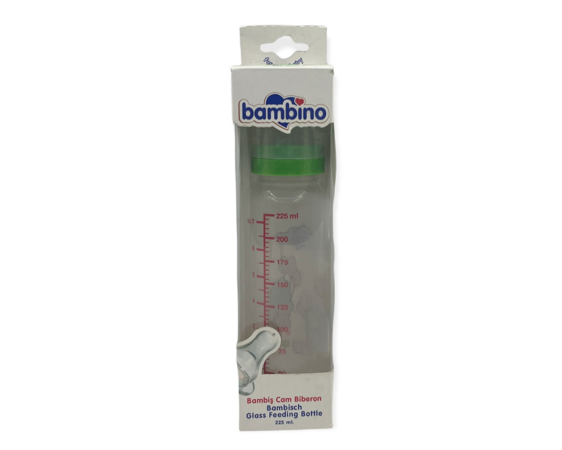 Bambino Bambiş Kiraz uçlu Cam Biberon 225 ml – Yeşil