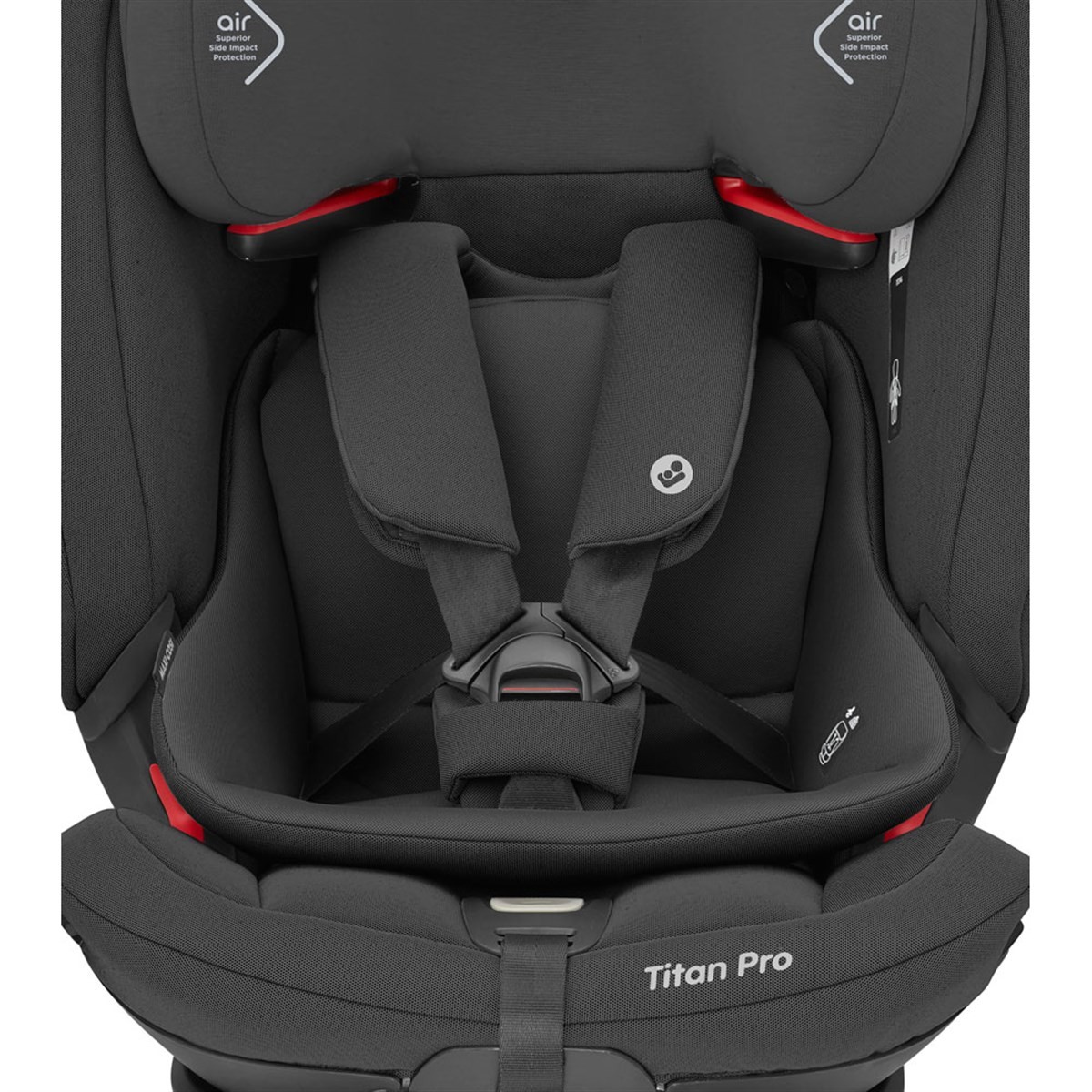 Titan Pro, ayrıca koltukta, sırtta ve koltuk başlığında yumuşak bir dolguya sahiptir, bu da uzun yolculuklarda yüksek düzeyde konfor sağlar. Bambu kumaştan yapılmış koltuk kılıfı nefes alır ve sıcaklık düzenleyici özelliğe sahip olup her yolculukta küçüklerinizi doğru sıcaklıkta tutar.
