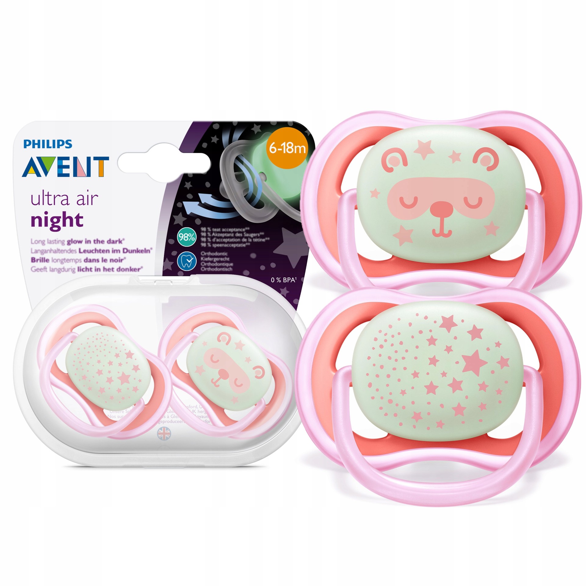 Philips Avent SCF376/22 Ultra Air Night Karanlıkta Parlar Gece Emziği 6-18 ay Kız