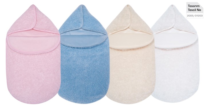 - Bebeğin baş kısmı battaniyenin içinde kalsın isterseniz , Battaniyenin baş kısmı çıt çıt ile şapka haline dönüştürülür
